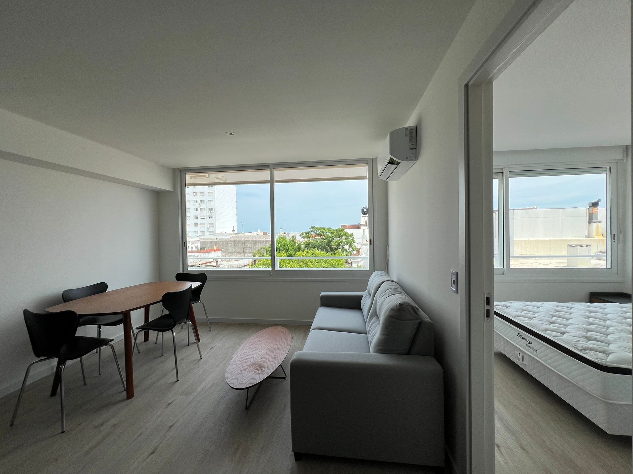 Se vende amueblado tal cual esta en las fotos. Sofá en living, mesa con 4 sillas en comedor, cama y mesas de luz en dormitorio, aire acondicionado en cada ambiente y toldo en ventanal del living.